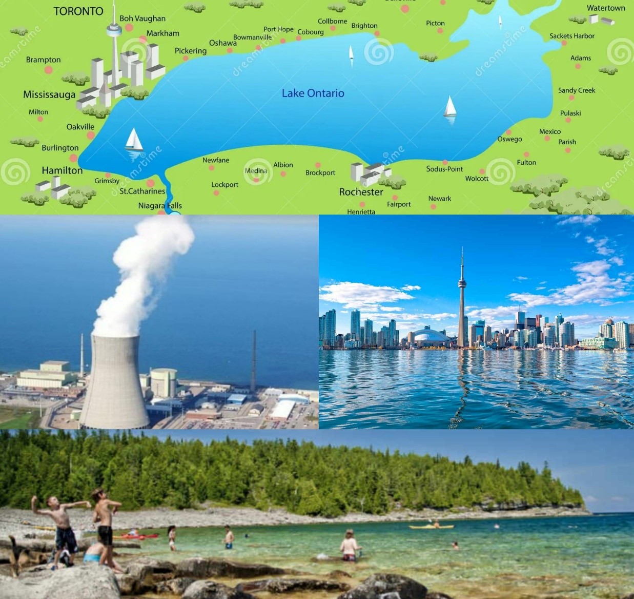 Detrás de esta notable capacidad energética que no contamina y su funcionamiento no depende de las condiciones climáticas, lo que las convierte en una fuente confiable y estable durante todo el año, se encuentran las centrales nucleares de Pickering y Darlington, pertenecientes al país del syrup y la hoja de arce roja: Canadá. Mientras que, del lado estadounidense, Nine Mile Point y Fitz Patrick se ubican en las márgenes de Oswego, ciudad cuyo curioso lema reza: “Donde el agua nunca termina. Cool por naturaleza”, como quien sabe que el agua que la rodea no solo refresca y calma la sed, sino también enfría reactores para iluminar autopistas, calles y avenidas.